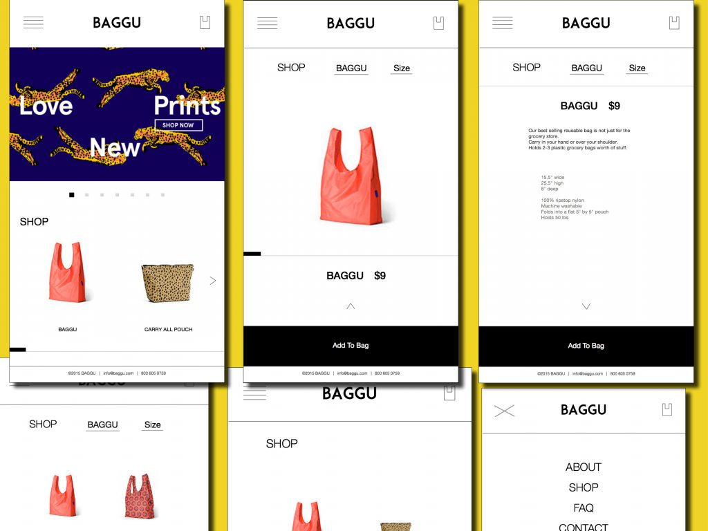I admire the identity of BAGGU: simple, high quality, and versatile across a spectrum of colors. I rebuilt the website to make it more user-friendly and compatible with mobile devices. Simultaneously, I retained certain original market decisions from the original website, believing they may lead to another aspect of identity.