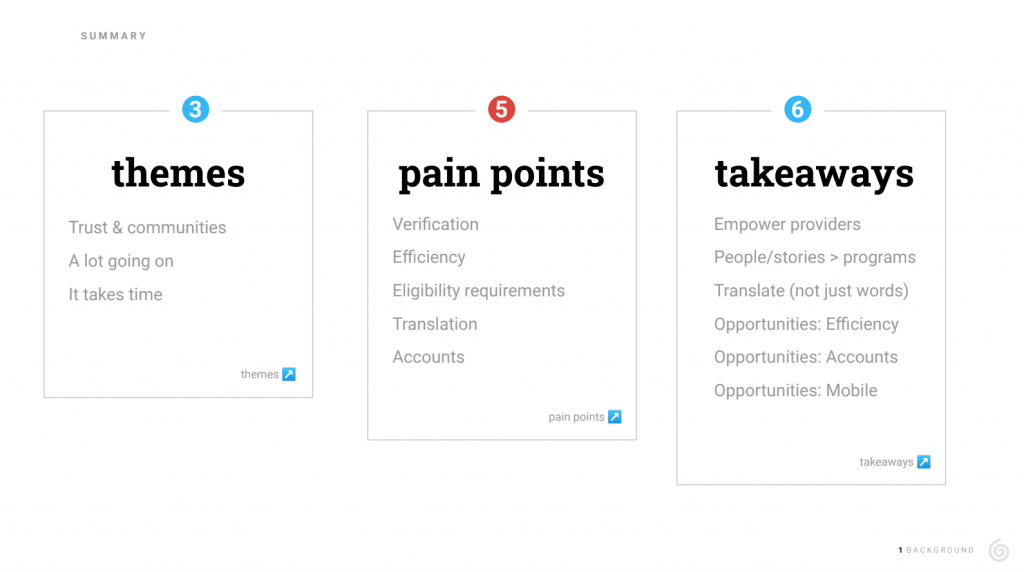 Besides foundational research from google and the gov research team. To better understand the problem space, I also did the secondary research to learn about the context and the similar product out there. I want to learn more about others’ problems, what kind of challenges they are facing, any patterns and opportunities out there.