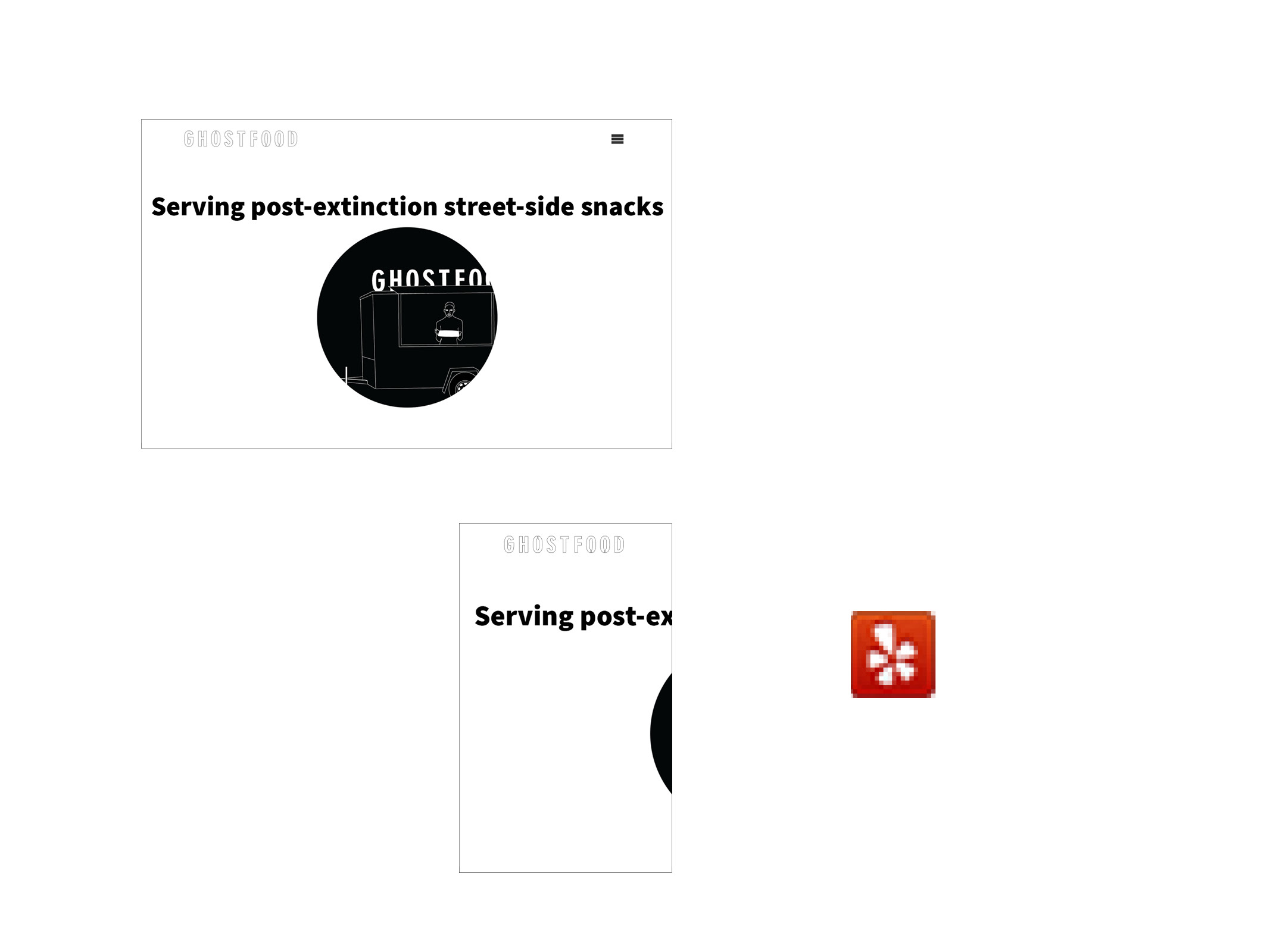 We decide only have one column with image and menu. The image needs to be big to showcase the product. And it only needs ‘about’ and ‘location’ under the menu.