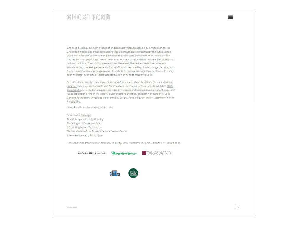 Assistant, GhostFood, a performance and an installation project by Miriam Simun and Miriam Songster. It is about an extension food in the future after the climate change, using ‘smell’ instead of ‘eat’ to eat them, supported by Marfa Dialogues/NY and the Robert Rauschenberg Foundation.