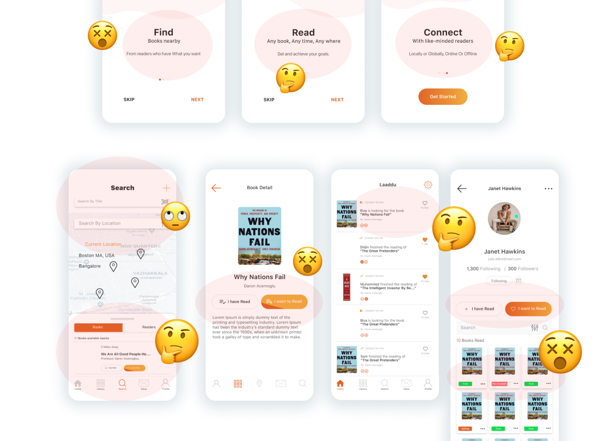 In the existing app, users can find available books near them, track their reading progress, and connect with people who have the book they need. However, the product doesn’t seem to have a seamless experience and the stakeholder wants to know what it is, how it can be improved, and eventually what else can be done.